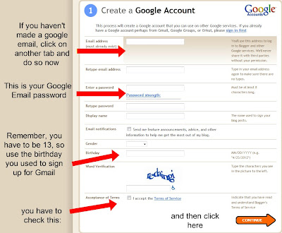 If you are still confused and need help, bring me your email address and password. I'll take it home, and create a default blog and then we can work on the design of it at school. If you create a blog at home, please make sure that you know your URL, email address, and password so you can get on it at school to change things around. I'm working on a scroll widget with all of your blogs, so we must have a grab button for everyone and all the blogs set up before summer starts! :-)